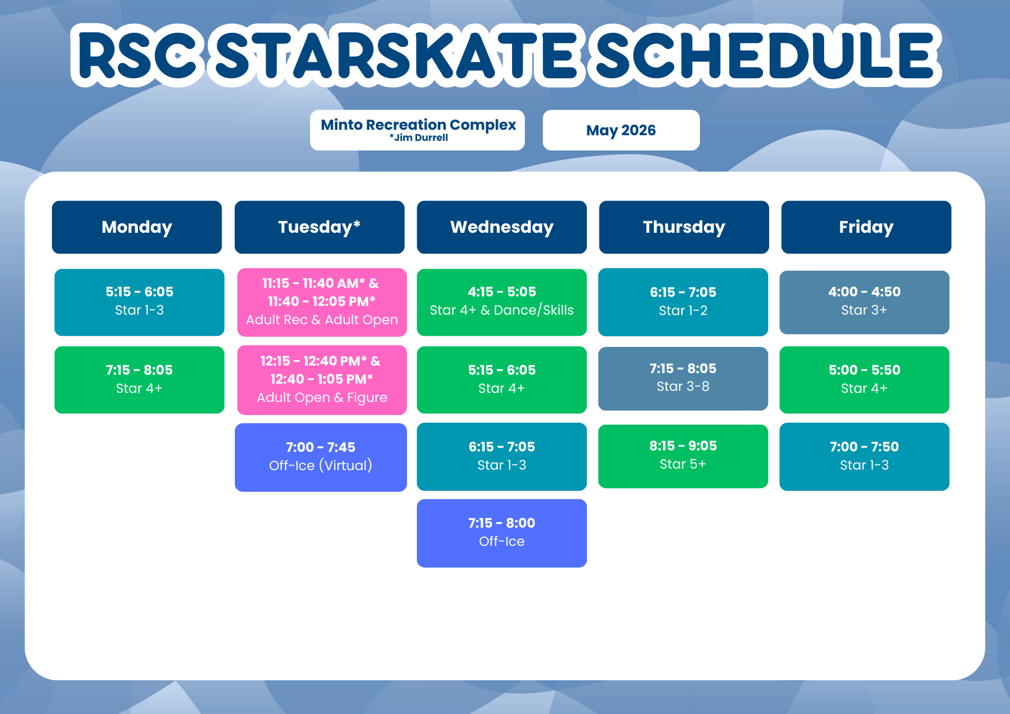 | 4:15–5:05 pm | Star 4+ Dance/Skills | May 6 (4:15-5:05 Only) |
